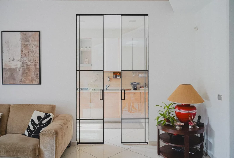 The clean and essential style is also that of the HenryGlass doors perfectly inserted to separate the rooms, amplifying the space.