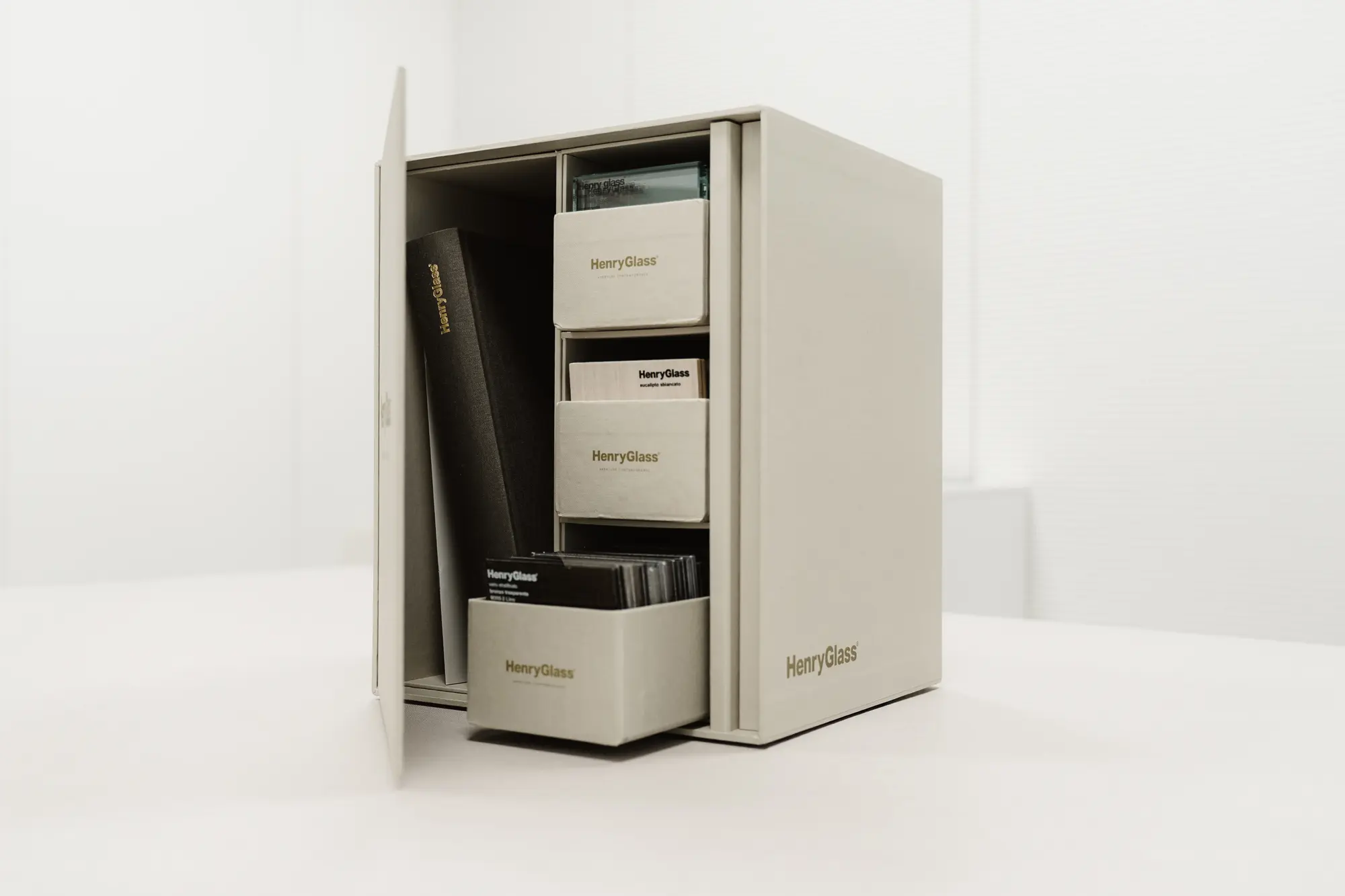 With the distribution of the New Catalogue, HenryGlass is also renewing its materials library, an essential part of the sample collection for showrooms, retailers and professionals. The new set of materials allows customers and architects to discover first-hand the finishes, textures and material effects that make HenryGlass doors and partition systems unique and customisable. An update designed to offer increasingly effective tools for product presentation and selection.