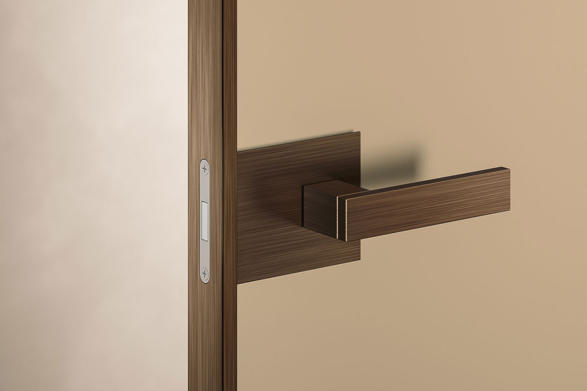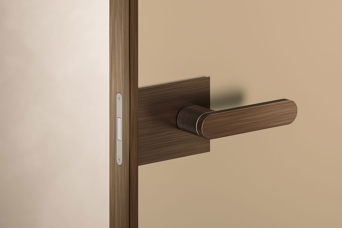 The Manhattan hinged door is characterized by a minimal profile that draws a minimum frame around the door.