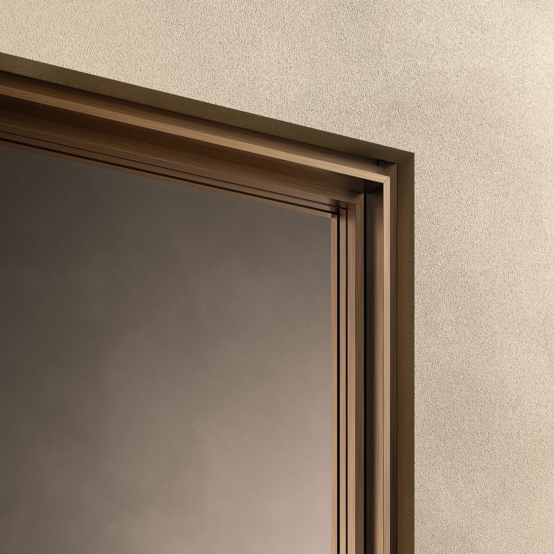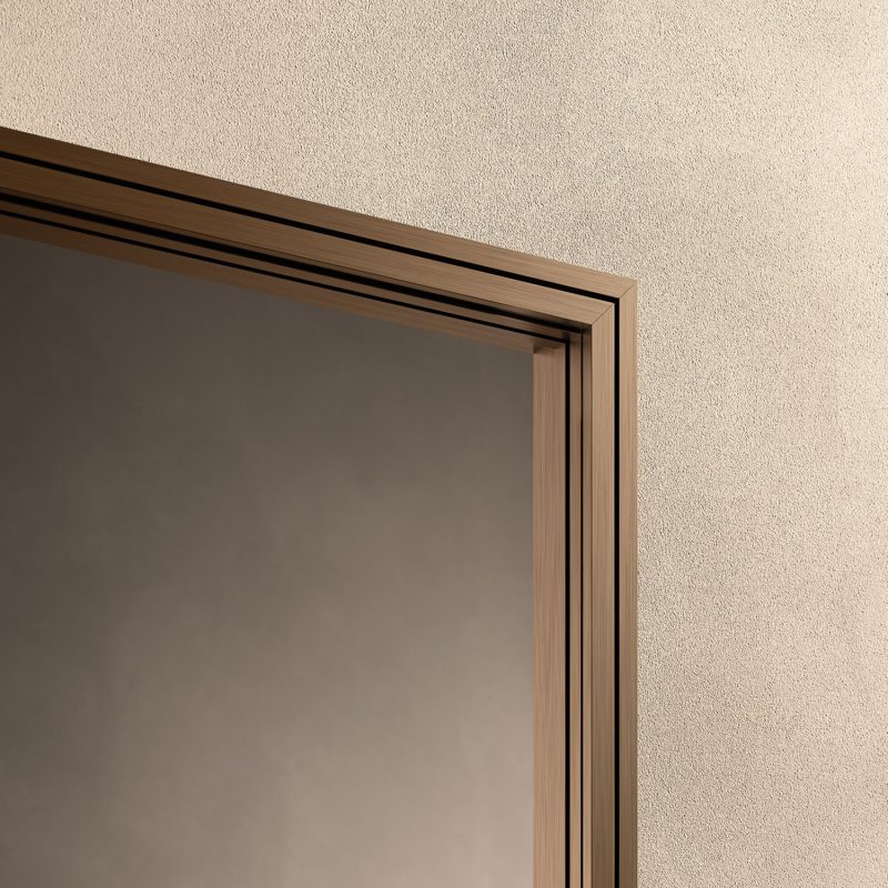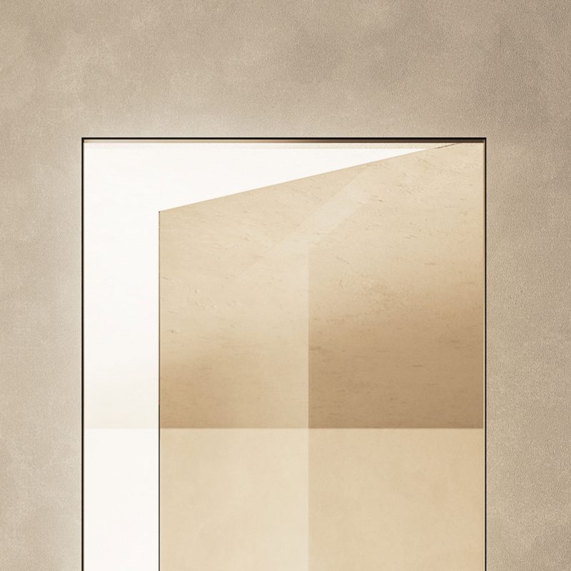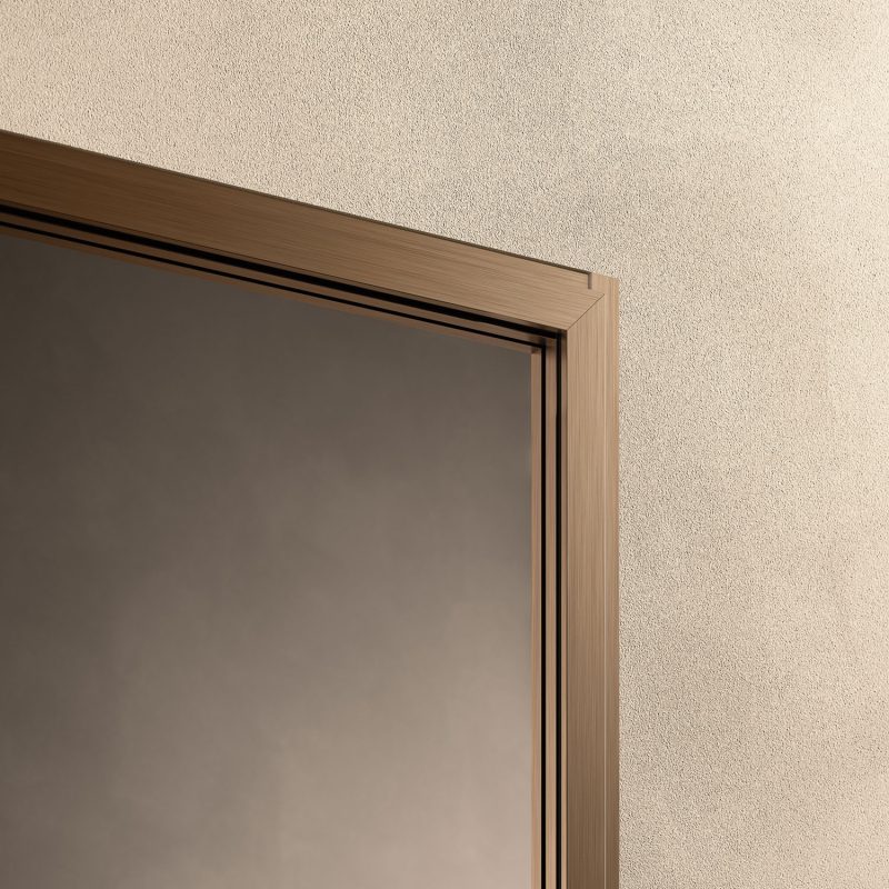 The door opening movement is guaranteed by an exclusive, minimal and visually light full-height hinge. Single door or double door.